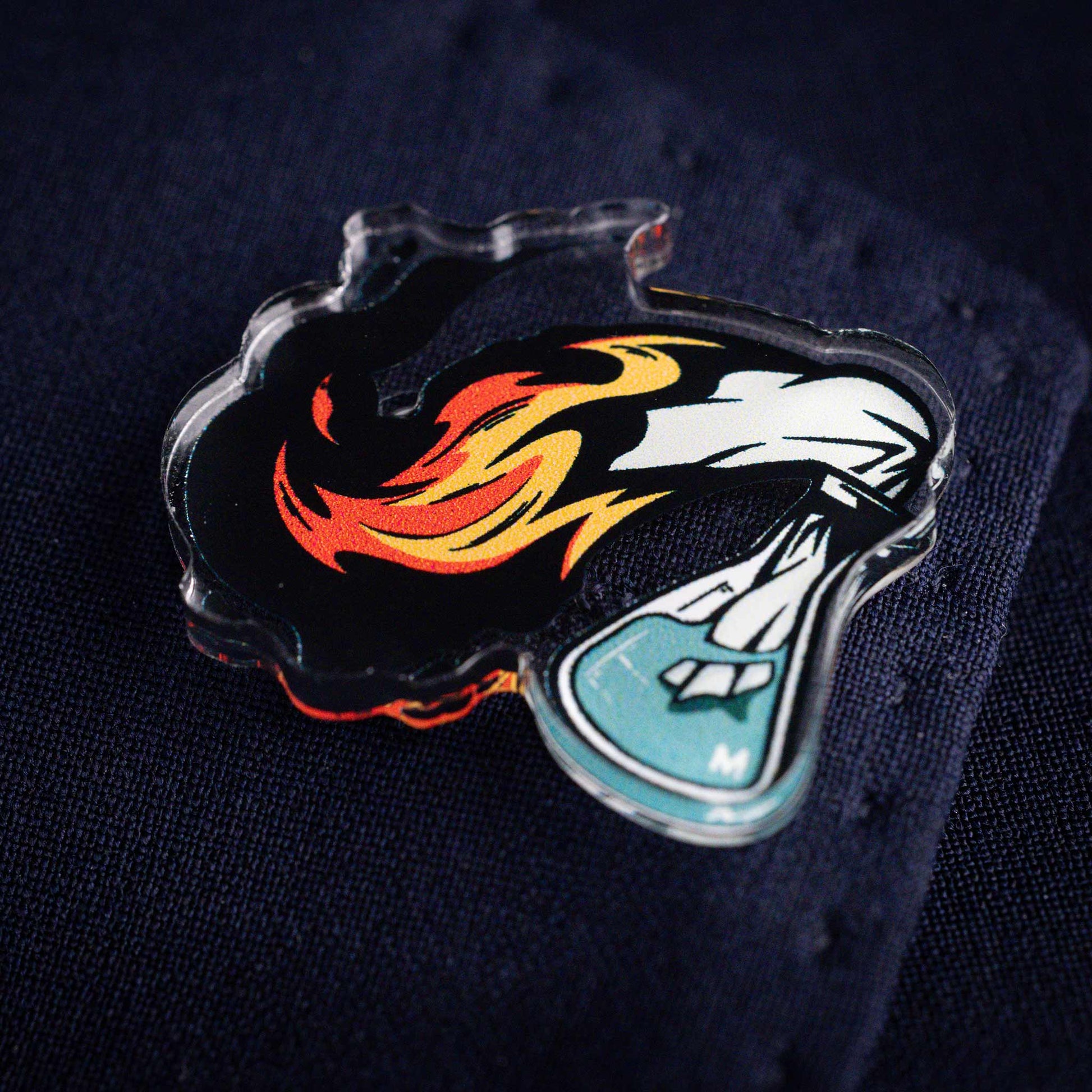 Dieser Ansteckpin kombiniert Symbolik mit Haltung: Ein Erlenmeyerkolben als Molotowcocktail, weil Wissenschaft keine Randnotiz ist, sondern ein Werkzeug für Fortschritt und Veränderung.