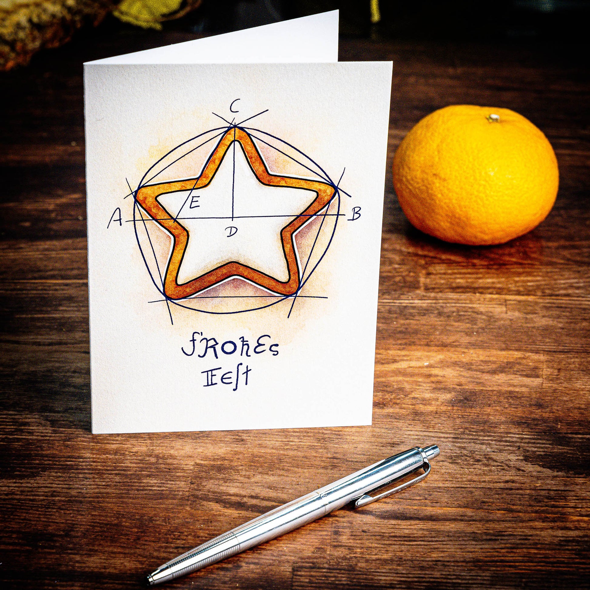 Wenn Geometrie auf Gebäck trifft: Diese Weihnachtskarte ist was für alle, die das Fest der Liebe am liebsten mit Logik, Linien und einem Zimtstern feiern.