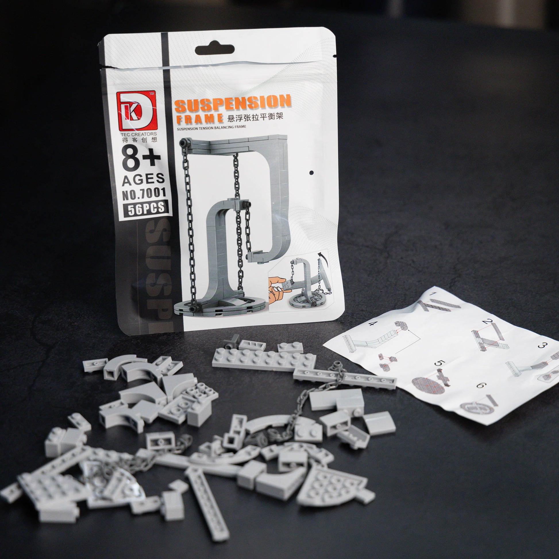 Mit diesem Bausatz baust du deine eigene kleine Tensegrity-Skulptur: ein Objekt, das schwebt, obwohl es so aussieht, als ob es das eigentlich nicht sollte. Die Bauteile halten sich nur über gespannte Ketten gegenseitig im Gleichgewicht.